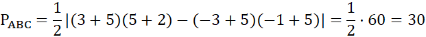 Należy obliczyć pole trójkąta o wierzchołkach A(-5,-2), B(3,-3), C(-1,5).