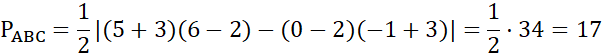 Należy obliczyć pole trójkąta o wierzchołkach A(-3,2), B(5,0), C(-2,6).