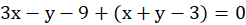 Należy obliczyć pole trójkąta, którego boki zawierają się w prostych 3x - y - 9 = 0, 2x + y - 1 = 0, x + y - 3 = 0.