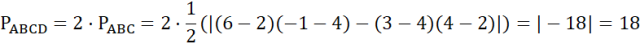 Należy obliczyć pole równoległoboku ABCD, jeżeli A(2,4), B(6,3), C(4,-1).