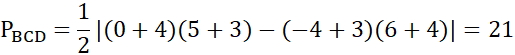 Należy obliczyć pole czworokąta o wierzchołkach A(-4,2), B(-4,-3), C(0,-4), D(6,5).
