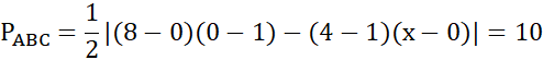 Należy tak wyznaczyć punkt C leżący na osi OX, aby pole trójkąta ABC było równe 10. Wiadomo, że A(0,1), B(8,4).