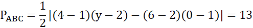 Należy tak wyznaczyć punkt C leżący na osi OY, aby pole trójkąta było równe 10. Wiadomo, że A(1,2), B(4,6).