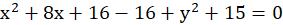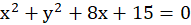 Należy podać długość promienia oraz współrzędne środka okręgu danego wzorem