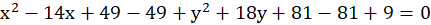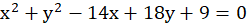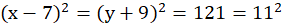 Należy podać długość promienia oraz współrzędne środka okręgu danego wzorem
