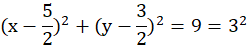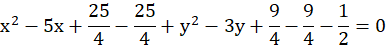 Należy podać długość promienia oraz współrzędne środka okręgu danego wzorem