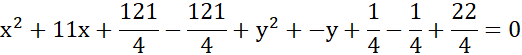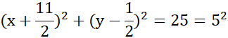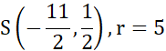 Należy podać długość promienia oraz współrzędne środka okręgu danego wzorem