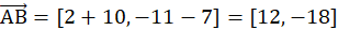 Należy obliczyć punkty, które dzielą odcinek AB na pięć równych odcinków, jeżeli A(-10,-7), B(2,-11).
