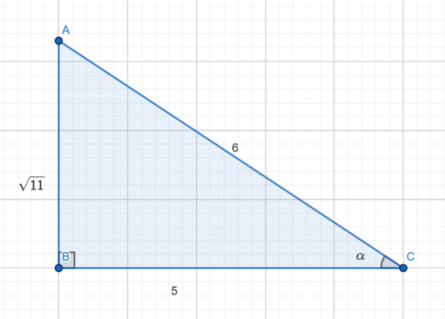 Teraz narysuj dwa boki – przyprostokątne trójkąta o wyznaczonych wartościach, a następnie połącz ich końce ze sobą tworząc bok c tego trójkąta. Na koniec zaznacz kąt alfa.