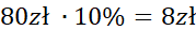 Oblicz, ile wynosi 10% z ceny pierwszej bluzki i odejmij tę wartość, aby obliczyć cenę drugiej bluzki.