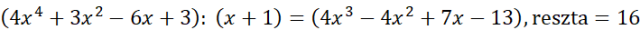 Aby wykonać to zadanie, musisz skorzystać z dzielenia pisemnego na wielomianach oraz wyznaczyć resztę z dzielenia. Dzielenie wielomianów wygląda bardzo podobnie do dzielenia pisemnego.