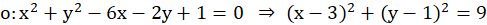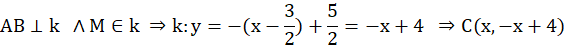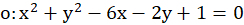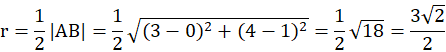 Należy podać równanie okręgu, który jest okręgiem opisanym na trójkącie ABC. Wiadomo, że punkty A i B to przecięcie prostej