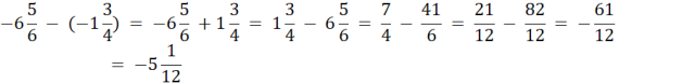 Odejmowanie liczby ujemnej można zastąpić dodawaniem jej wartości bezwzględnej. Żeby dodać lub odjąć ułamki sprowadzamy je do wspólnego mianownika, zamieniamy na ułamek niewłaściwy i odpowiednio dodajemy lub odejmujemy.