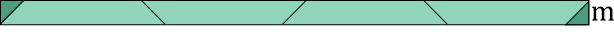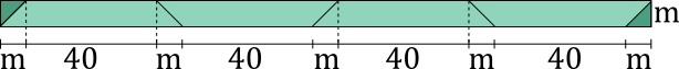 Zaciemniony trójkąt to trójkąt prostokątny równoramienny, więc obie przyprostokątne mają długość m. Krótsza podstawa trapezu musi mieć długość równą długości boku obrazu, czyli 40 cm. Dłuższa podstawa trapezu ma więc długość 40 + 2m. W sumie długość listwy wynosi 160 + 5m.