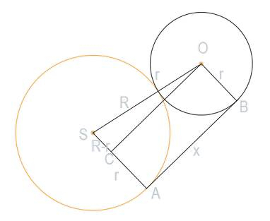 Trójkąt SOC jest prostokątny oraz: