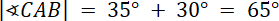 Dany jest okrąg o środku w punkcie O. Korzystając z danych na rysunku, musisz wyznaczyć miary kątów trójkąta ABC.