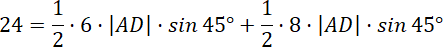Wyznacz pole trójkąta ABC na dwa różne sposoby, a następnie przyrównaj i wyznacz długość dwusiecznej.