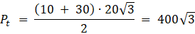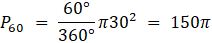 Pole zacieniowanej figury równe jest różnicy pola trapezu i dwóch łuków:
