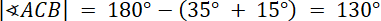 Dany jest okrąg o środku w punkcie O. Korzystając z danych na rysunku, musisz wyznaczyć miary kątów trójkąta ABC.