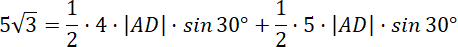 Wyznacz pole trójkąta ABC na dwa różne sposoby, a następnie przyrównaj i wyznacz długość dwusiecznej.