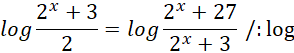 log(2x + 3) – log2 = log(2x + 27) – log(2x + 3)