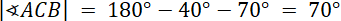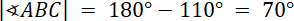Dany jest okrąg o środku w punkcie O. Korzystając z danych na rysunku, musisz wyznaczyć miary kątów trójkąta ABC.