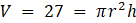 Dany jest walec, którego pole boczne jest równe dwóm polom podstawy, a jego objętość wynosi 27. Znajdź jego wymiary.