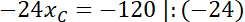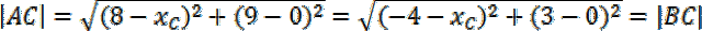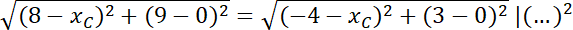 Dodatkowo C ma zerową współrzędną y (leży na osi x). Stąd: