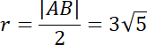 Okrąg opisany na trójkącie ABC ma swój środek w połowie przeciwprostokątnej, a promień to połowa długości przeciwprostokątnej.: