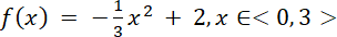 Skoro wierzchołek w punkcie x = 0 i ramiona skierowane w dół, to f(0) = 2 będzie wartością największą, a f(3) = - 1 najmniejszą.