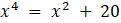 Czwarta potęga liczby jest większa od jej kwadratu o 20. Znajdź tę liczbę.