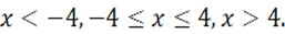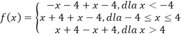 Rozważamy przypadki, gdy oba wyrażenia pod wartością bezwzględną są ujemne, jeden dodatni drugi ujemny, oba dodatnie.
