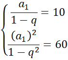 Wyznacz pierwszy wyraz i iloraz tego ciągu, jeśli suma wszystkich wyrazów nieskończonego ciągu geometrycznego jest równa 10, a suma kwadratów tych wyrazów jest równa 60.