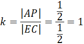 Wykonaj rysunek pomocniczy. Wiedząc, że trójkąty AP’P i EPC są podobne na podstawie cechy kkk, wyznacz skalę podobieństwa i oblicz długość |AP’|.