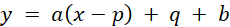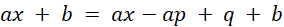 przesunięto o p jednostki w prawo, a następnie o q jednostek w górę i otrzymano prostą pokrywającą się z wykresem funkcji