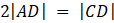, jeśli wiadomo, że CD jest środkową i 2|AD| = |CD|.
