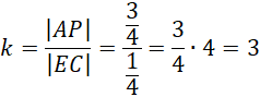 Wykonaj rysunek pomocniczy. Wiedząc, że trójkąty AP’P i EPC są podobne na podstawie cechy kkk, wyznacz skalę podobieństwa i oblicz długość |AP’|.