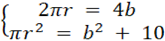 Koło o promieniu r i kwadrat o boku b mają równe obwody. Pole koła jest większe od pola kwadratu o 10.