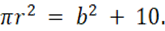 Wiemy, że pole koła jest większe od pola kwadratu o 10, czyli pole koła jest równe tyle co pole kwadratu i jeszcze 10, stąd