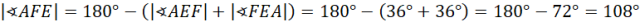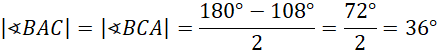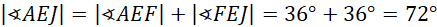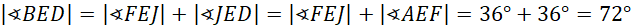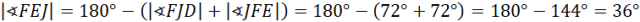 Zacznij od wyznaczenia sumy miar kątów wewnętrznych w pięciokącie. Kolejno wyznacz miarę kąta wewnętrznego w pięciokącie foremnym. Wiadomo, że trójkąt CBA jest równoramienny. Wyznacz miary kątów BAC i BCA. Wiadomo, że kąty BAC i EAD mają takie same miary. Następnie wykorzystaj fakt, że trójkąt AFE jest równoramienny i wskaż, że kąty AEF i FAE są równe. Kolejno wyznacz miarę kąta AFE i następnie miarę kąta EFD. Wykorzystaj fakt, że trójkąt FJE jest równoramienny i wskaż, że kąty FJE i JFE są równe. Wyznacz miarę kąta FEJ. Wiadomo, że trójkąt AJE jest równoramienny, czyli boki AJ i AE są równe i mają długość a. Trójkąt BDE jest równoramienny, ponieważ przekątne w pięciokącie mają taką samą długość. Wyznacz miarę kąta BED. Trójkąty AJE i BDE mają identyczne miary, więc są one podobne z cechy kkk. Z podobieństwa tych trójkątów wyznacz równość