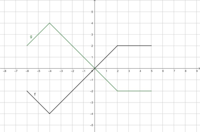 W tym zadaniu musisz narysować wykres funkcji g, określonej wzorem g(x) = - f(x). Podaj dziedzinę i zbiór wartości funkcji g.