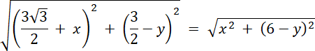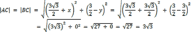 Wszystkie boki muszą mieć taką samą długość, zatem to jest pierwszy warunek zadania. Następnie korzystając z informacji, że punkt