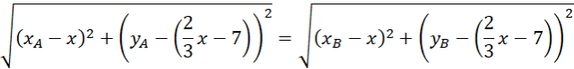Oblicz współrzędne wierzchołka trójkąta równoramiennego, o dwóch wierzchołkach w podanych punktach i trzecim, leżącym na danej prostej.