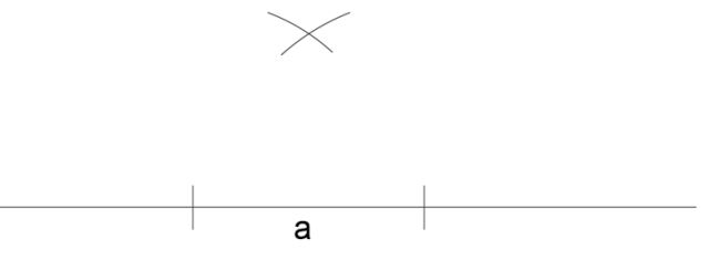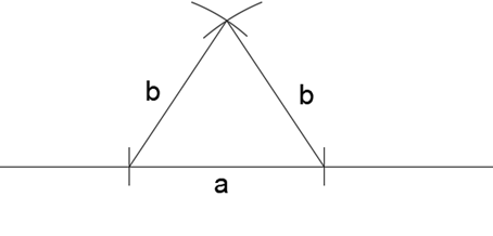 Następnie wbijając cyrkiel o rozwartości równej b w końce odcinka a, zakreśl przecinające się łuki.
