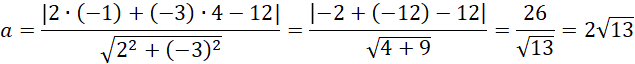 Oblicz pole kwadratu, którego jeden bok należy do podanej prostej, a jeden z wierzchołków znajduje się w podanym punkcie.