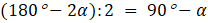 W trójkącie równoramiennym kąt między ramieniem a wysokością ma miarę: