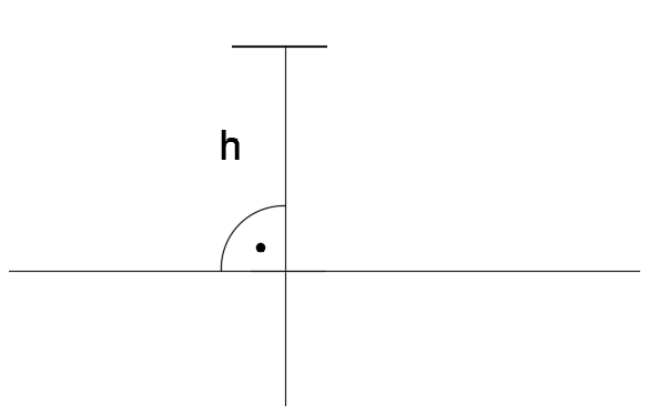 Narysuj dwie proste prostopadłe do siebie, na pionowej odłóż wysokość h: