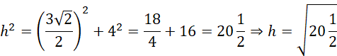 Skorzystaj z twierdzenia Pitagorasa, aby wyznaczyć długość h, a następnie oblicz pole.
