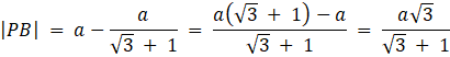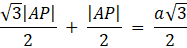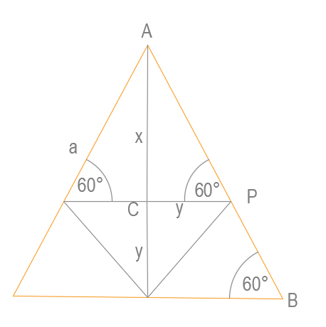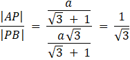Znajdź stosunek, w jakim P dzieli bok AB, jeśli jeden z narysowanych trójkątów jest równoboczny a drugi prostokątny równoramienny.
