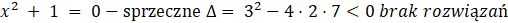 Równanie nie posiada rozwiązań w zbiorze liczb rzeczywistych.